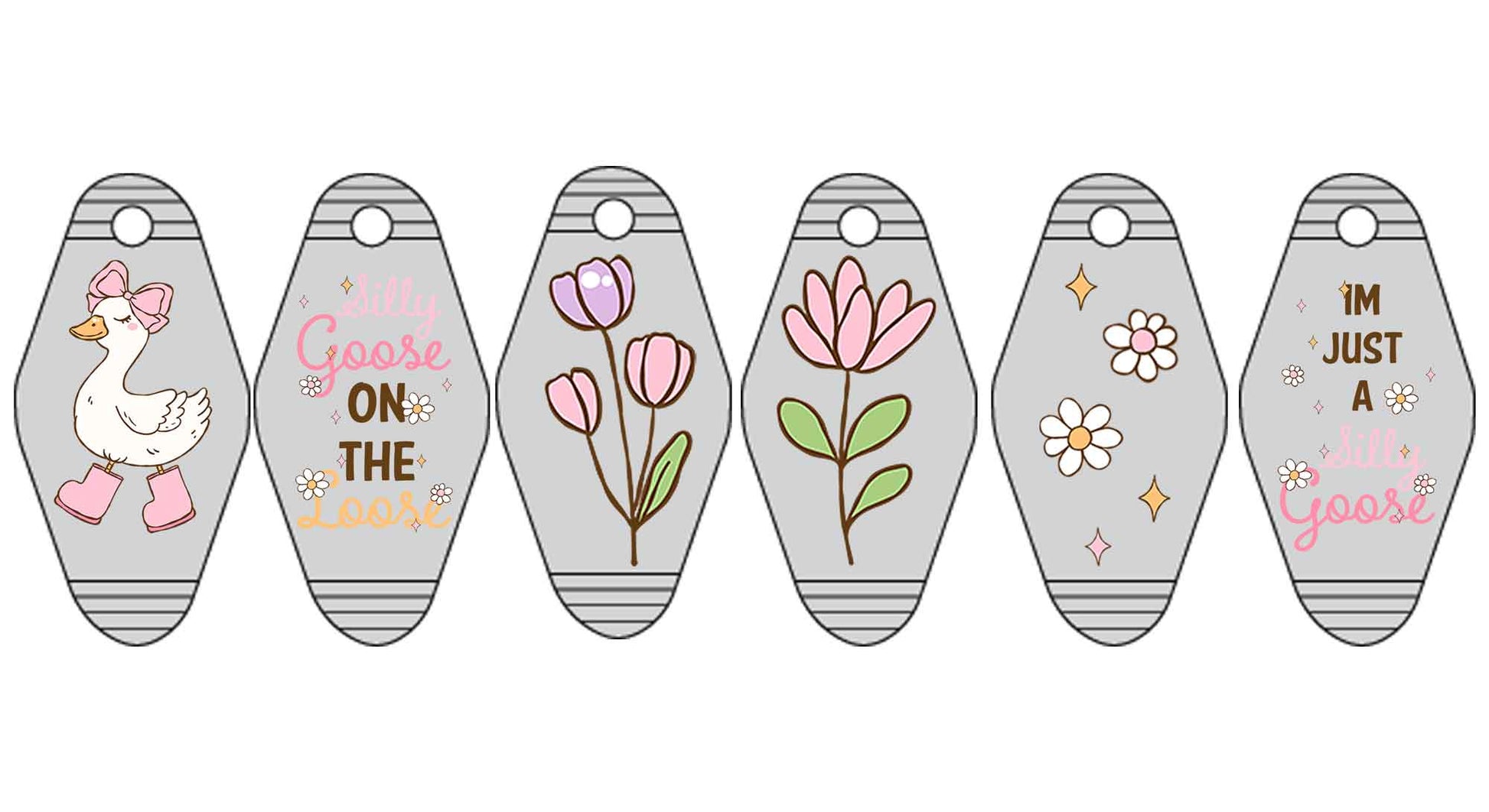 These sets are made to fit perfectly on our very popular motel keychains. They can also be applied to badge reels, acrylics, or any type of hard surface!