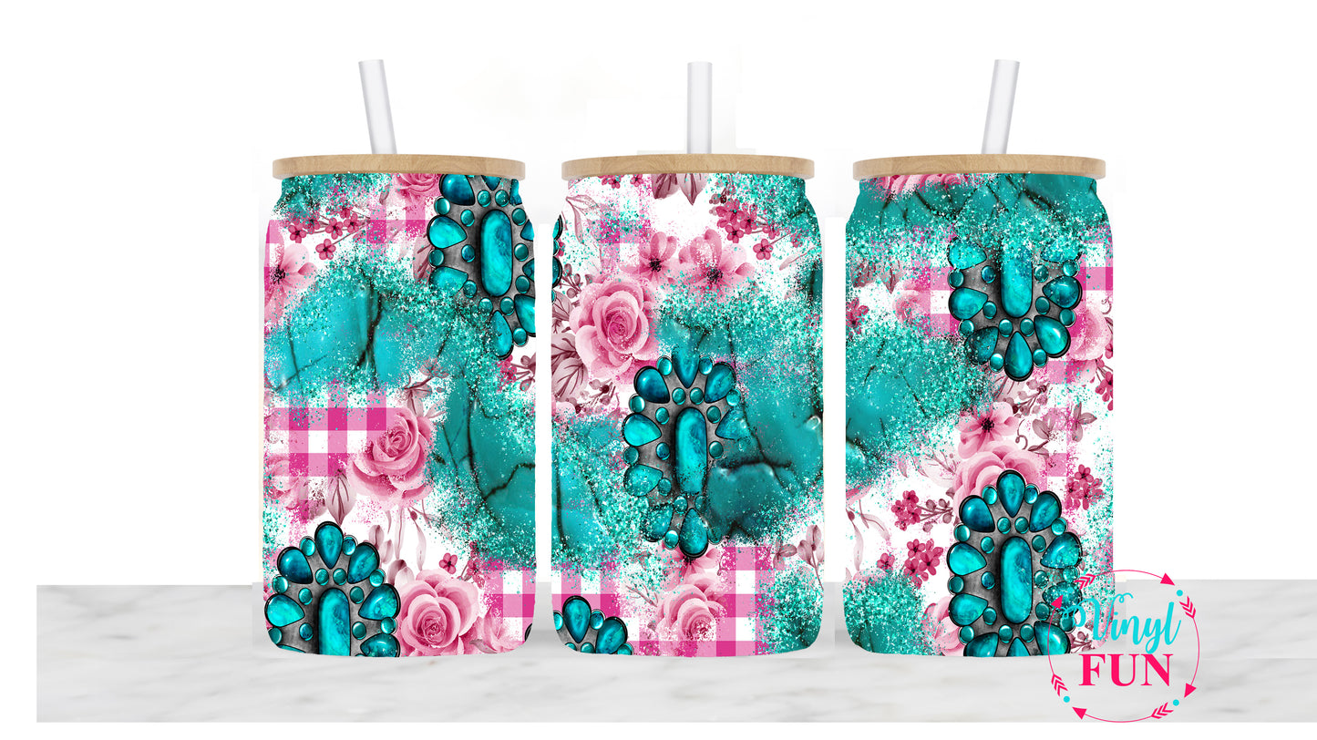 Pink Gingham and Turquoise Sublimation Libbey Wrap - L27