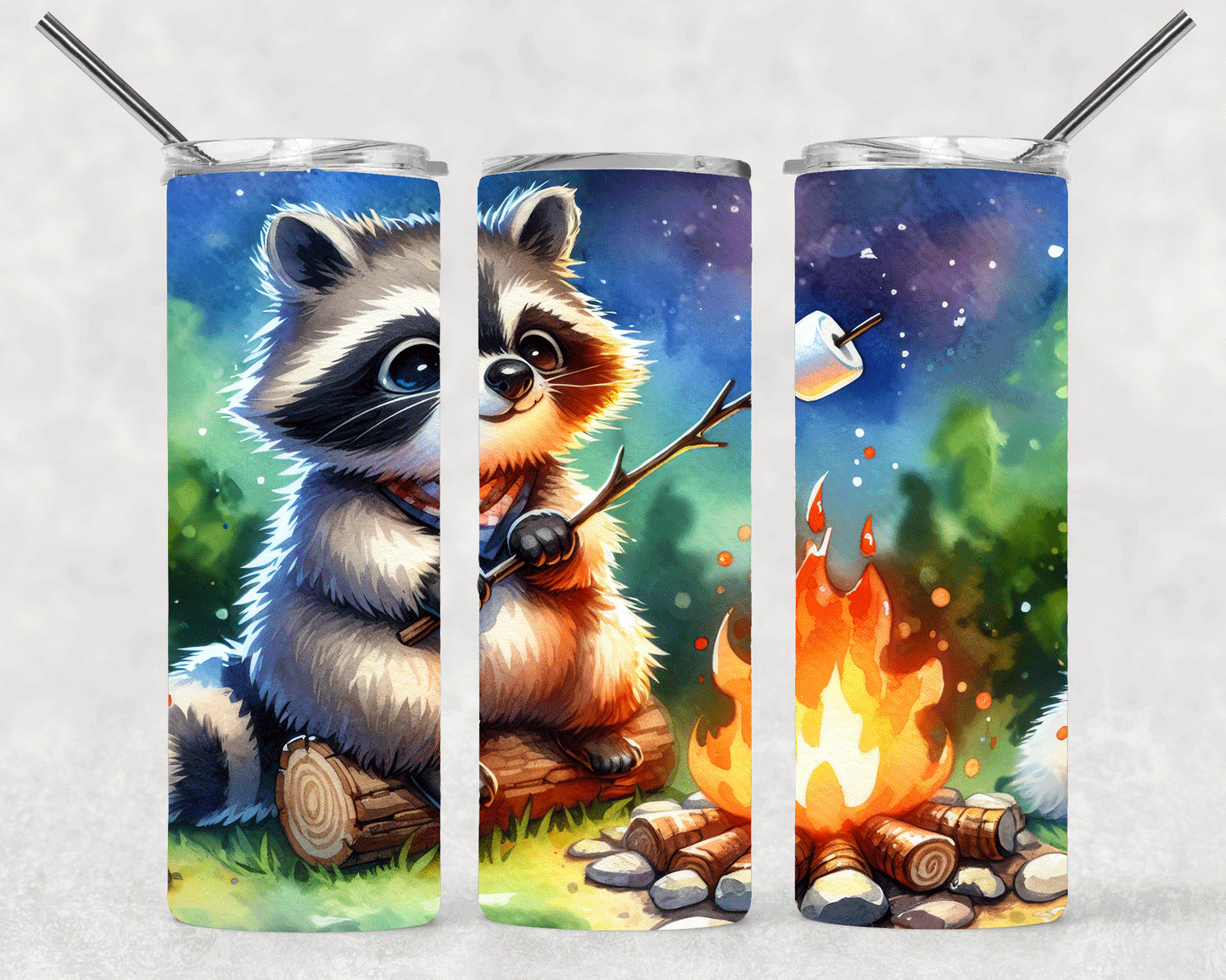 Racoon Bonfire Wrap For Straight Tumbler-S407